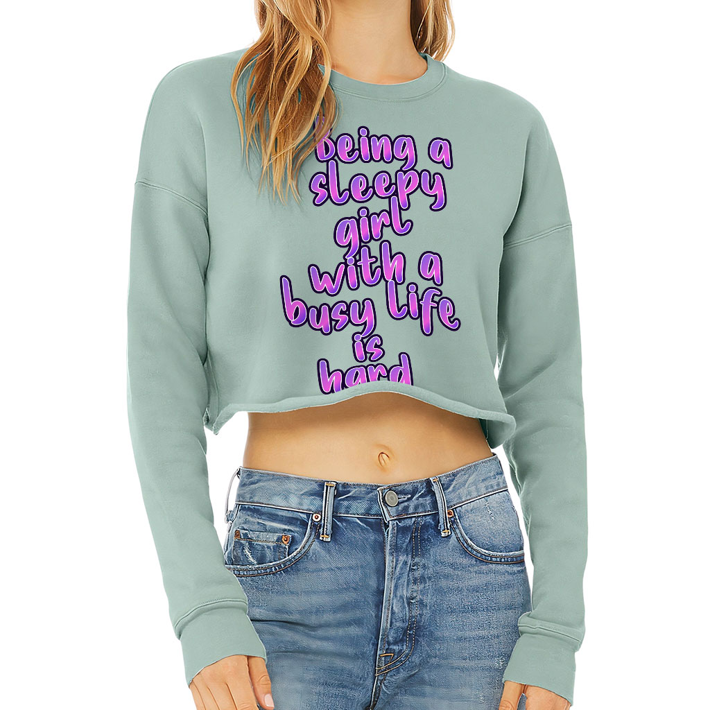 Being a Sleepy Girl Cropped Sweatshirt – Cool Design Women’s Sweatshirt – Best Print Crop Crew Sweatshirt