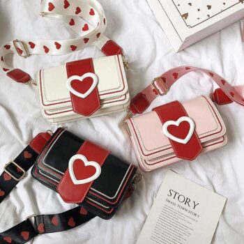 Cute Kawaii Heart Quilted Crossbody Bag for Women