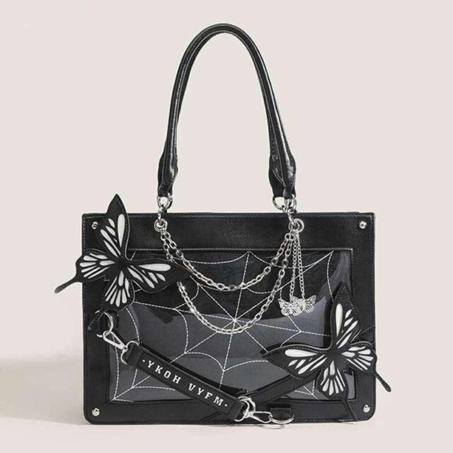 Step into a world where gothic charm meets Y2K flair with our Gothic Lolita Y2K Chain Crossbody Tote. Crafted for the fashion-forward woman, this punk vintage large shoulder bag is not just an accessory; it’s a statement. Whether you’re navigating the urban jungle or capturing moments in street photography, this handbag elevates your ensemble with an air of mystique and sophistication.