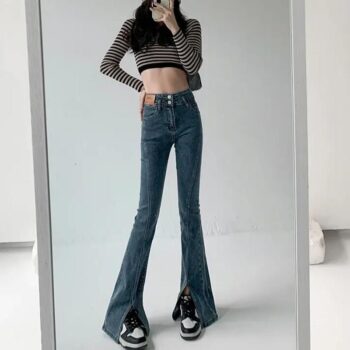 Y2K Aesthetic Flare Jeans – Low Waist Vintage Split Hem Denim