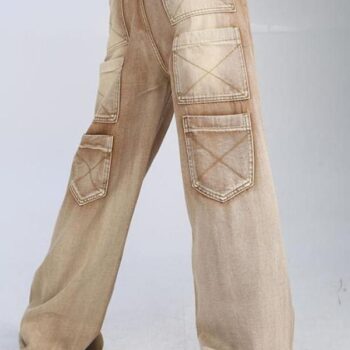 Vintage Distressed Wide-Leg Jeans with Rivet Accents