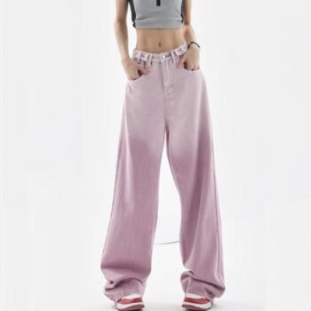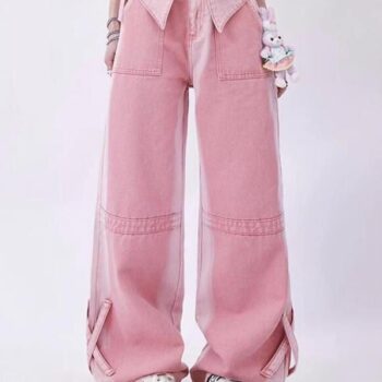 Pink High-Waisted Baggy Wide Leg Jeans – Y2K Fashion Women’s Streetwear