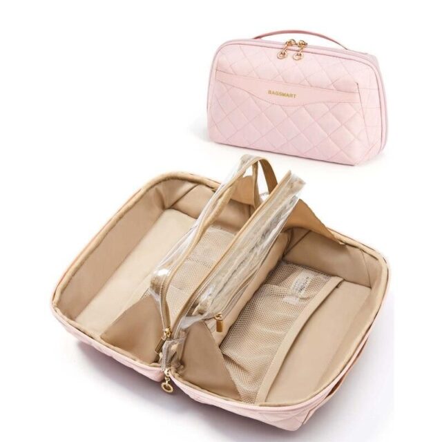With dimensions of 10.4 x 6.1 x 4 inches, this bag is your perfect partner for a week-long trip or everyday use. It’s not just a makeup bag; its versatility extends to being a toiletry bag, travel wallet, tech accessory organizer, and more. Its fashionable design makes it a stylish accessory, no matter where you are.