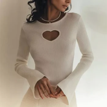 Heart Knit Hollow-Out Sweater with Flare Sleeves